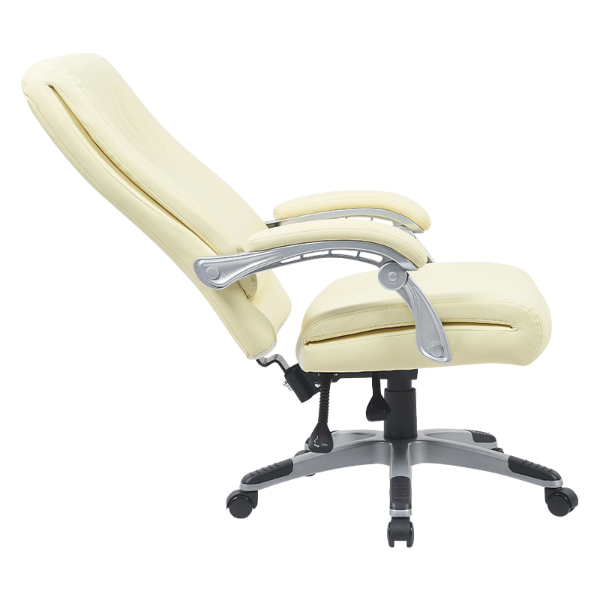 را chair’s smooth, glossy armrests are painted in a sophisticated silver-white finish, contributing to the overall modern aesthetic while offering durable and reliable support for the arms during long work hours.