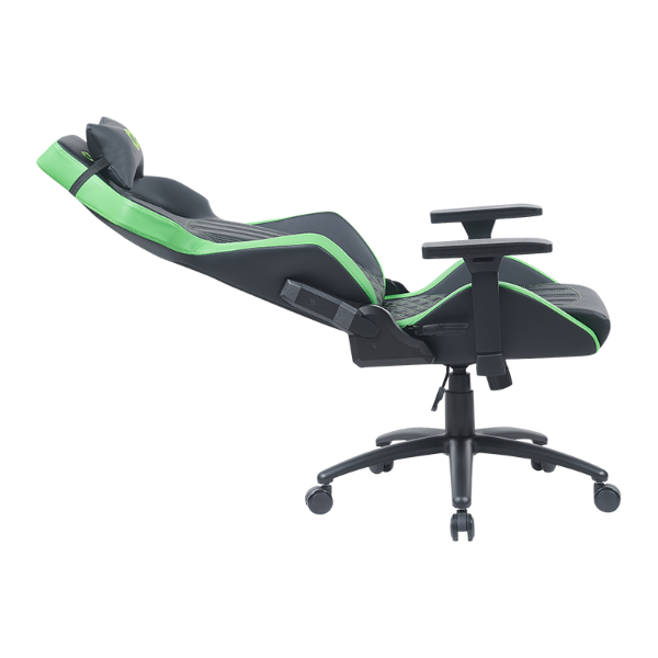 را chair allows for a reclining range of 90° to 155°, providing versatile seating options from intense gaming sessions to a more relaxed, laid-back position. The handle can be pulled out to unlock the reclining mechanism, and by pushing the handle back in, you can easily lock it in place at your desired angle. This feature ensures that gamers can transition smoothly between gaming and resting.