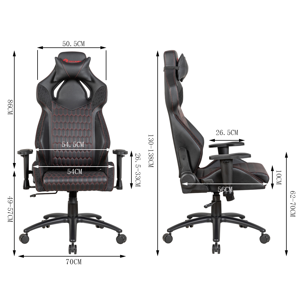 صندلی بازی چرمی PVC با قاب فلزی پشت بالا RX-2090 از یک قاب فلزی با استحکام بالا استفاده می کند. این فلز فرآیند عملیات حرارتی خاصی را پشت سر گذاشته و دارای استحکام و چقرمگی بسیار خوبی است. Even under high-frequency use, the frame of the chair can maintain excellent stability without deformation or loosening. چه بازیکن در بازی بایستد و با هیجان تشویق کند یا مرتباً وضعیت نشستن را در استفاده روزانه تنظیم کند، قاب صندلی می تواند فشارهای مختلفی را تحمل کند و پشتیبانی محکمی برای بازیکن ایجاد کند. را